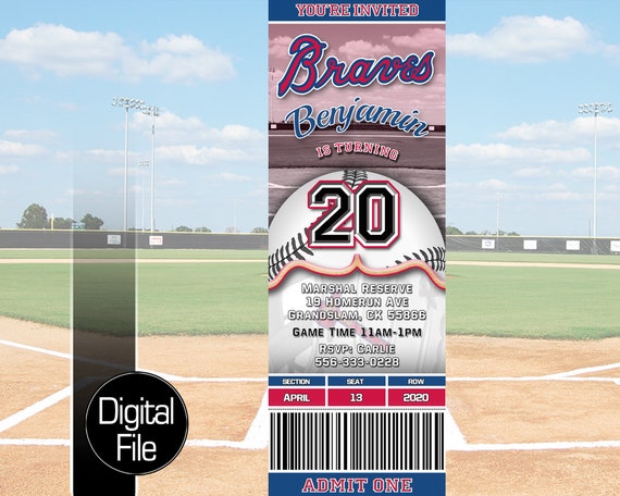 Atlanta Braves Ticket Style Baseball Birthday Invitation Etsy
